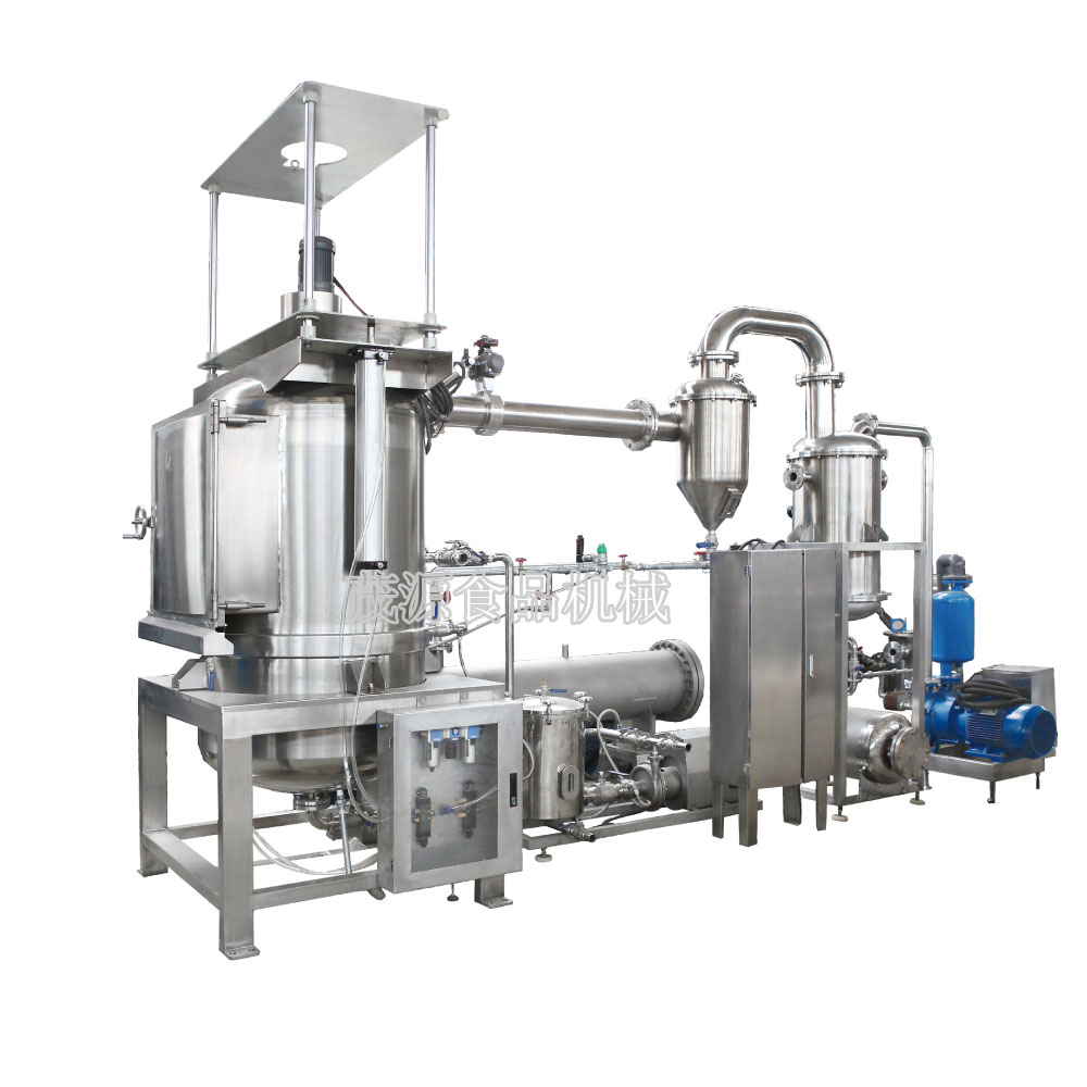在真空(負(fù)壓)的狀態(tài)下,食品中的水分汽化溫度降低,真空低溫脫水機(jī)以食用植物油作為傳熱媒介,使食品中的水分急劇蒸發(fā)而噴出,從而實(shí)現(xiàn)低溫條件下對(duì)食品的油炸。